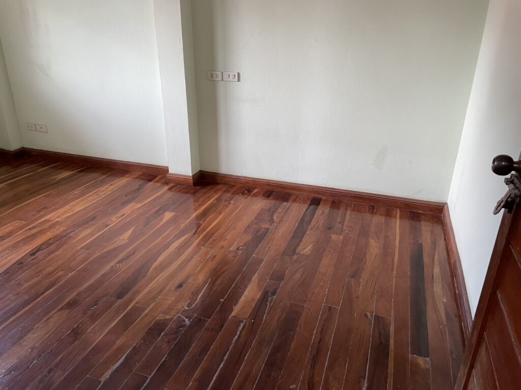 - พื้นบนปูด้วยไม้ลามิเนตลิ้นรางทั้งชั้น ให้ความรู้สึกอบอุ่นและหรูหรา