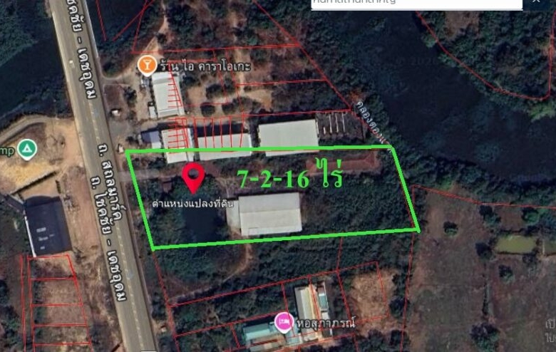 เนื้อที่ 7-2-16 ไร่ หน้ากว้าง 64 เมตร X ลึก 200 เมตร